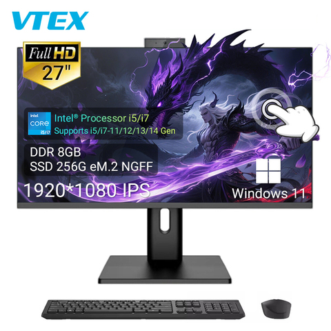 27 इंच हाई एंड ऐयो पीसी कोर i5 i7 11 वीं से 14 वीं पीढ़ी के सीपीयू सपोर्ट 10 पॉइंट कैपेसिटिव टच स्क्रीन पॉप अप कैमरा सभी एक पीसी में पॉप अप कैमरा
