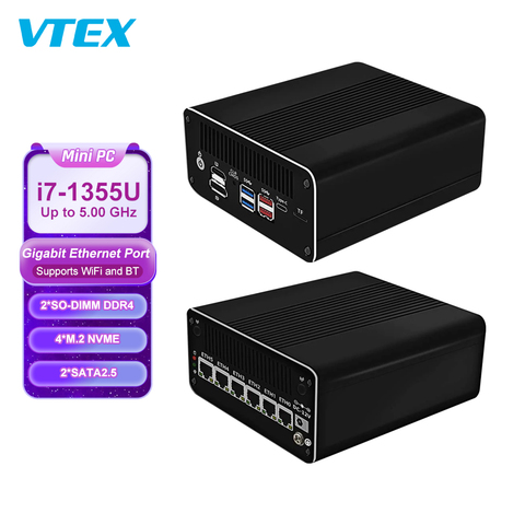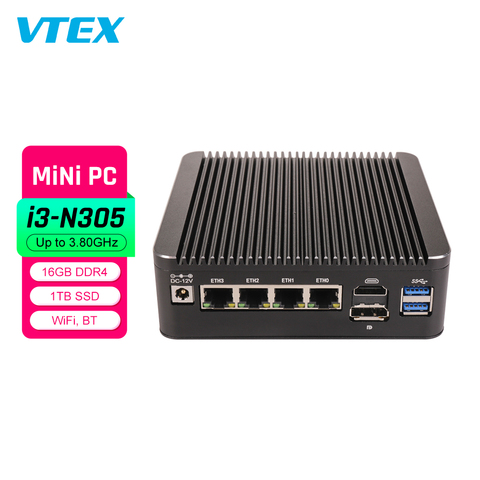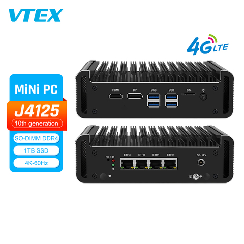 Vtex Mini-PC-Desktop-Computer Low Power 4x Rj45 Metall gehäuse Lüfter los mit 4G LTE Sim-Karte Neue J4125 CPU DDR4 RAM SSD-Festplatte