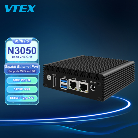 Vetx Mini-PC mit N3700 Intel Dual Mesh Port Metall wärme ableitung Lüfter los für den Heimgebrauch Kleiner industrieller Mikro computer