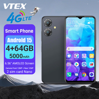 6.56 inch Điện thoại di động Android 15 AMOLED Incell Màn hình 5000mAh 4GB 64GB bộ nhớ Dual Sim hỗ trợ kép 12MP máy ảnh 4 gam điện thoại thông minh